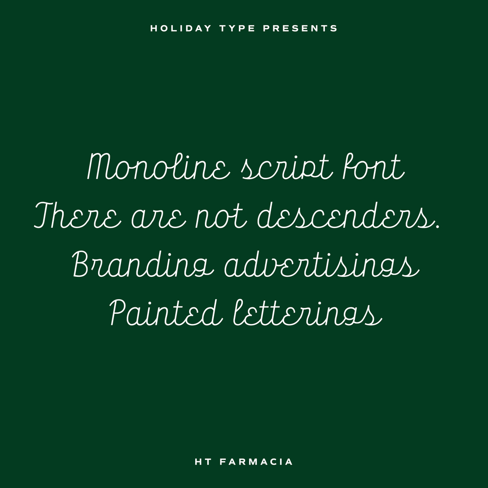 Retro script based on shopfront lettering, wallpaint advertisements in Italy around 1950s. This is a monoline script font. Its tail gives us cute and lovely impression, but it is also methodical and punctual.